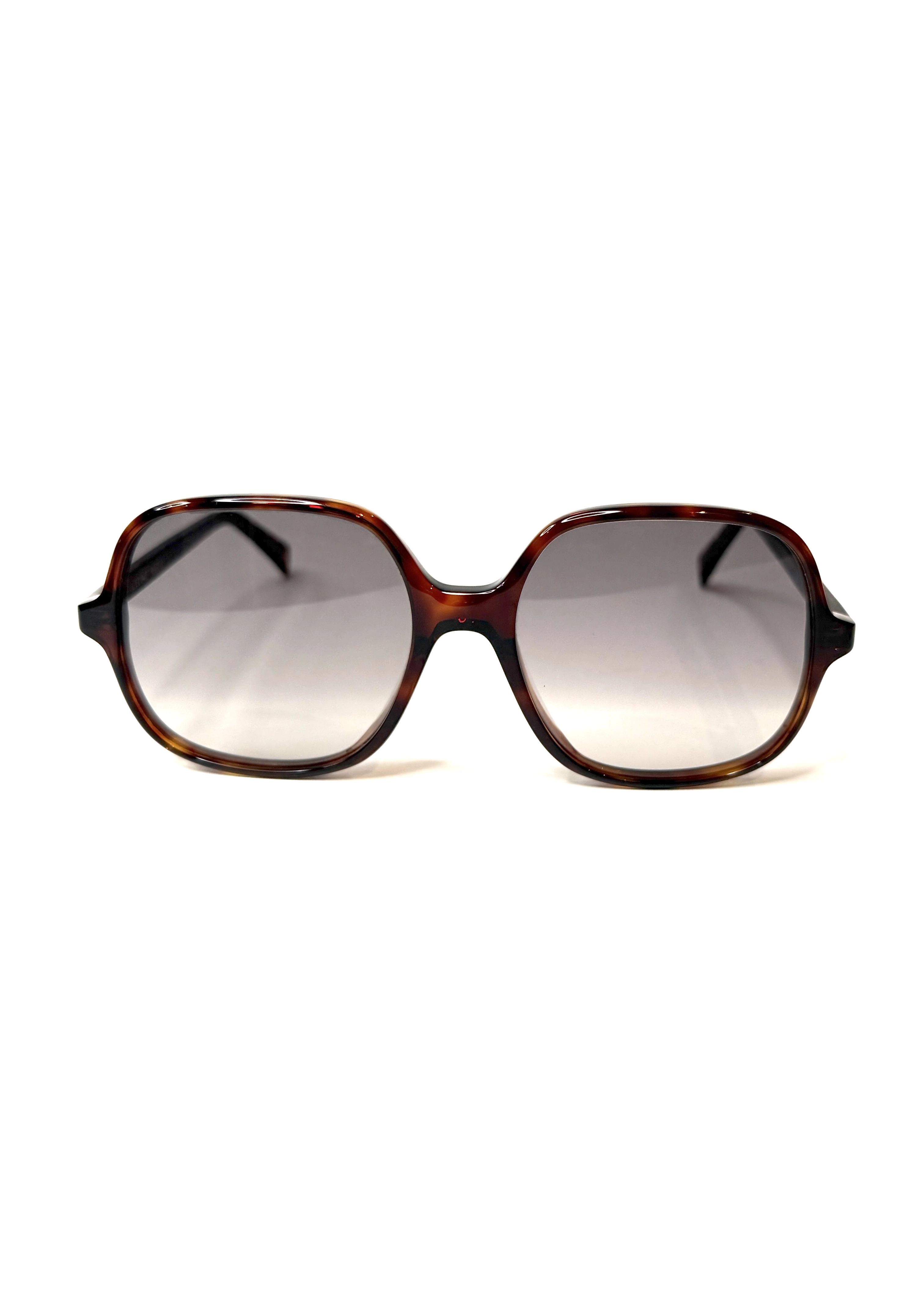 Oversize’owy model w odcieniu ciemnej havany z delikatnie cieniowanymi szkłami.