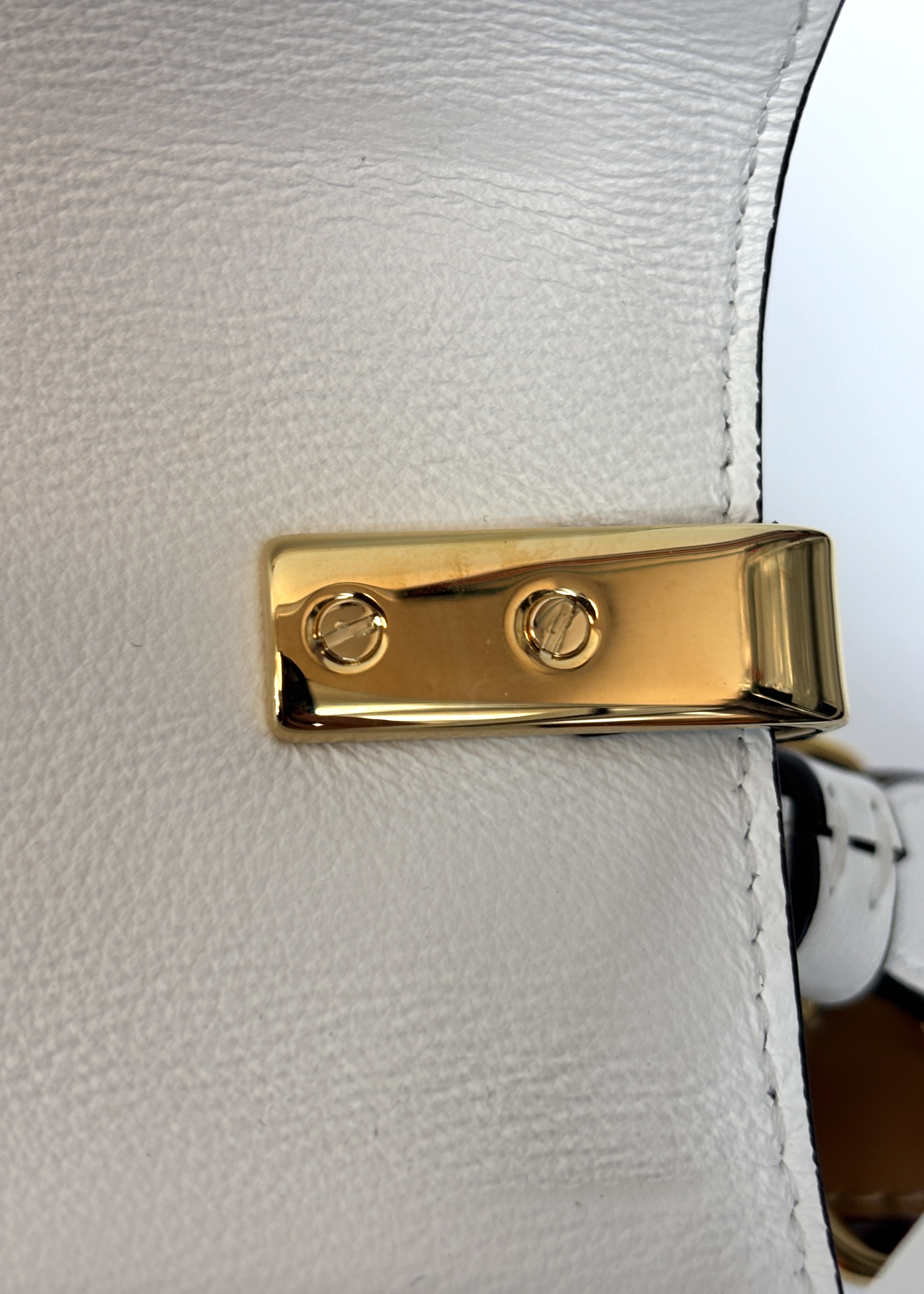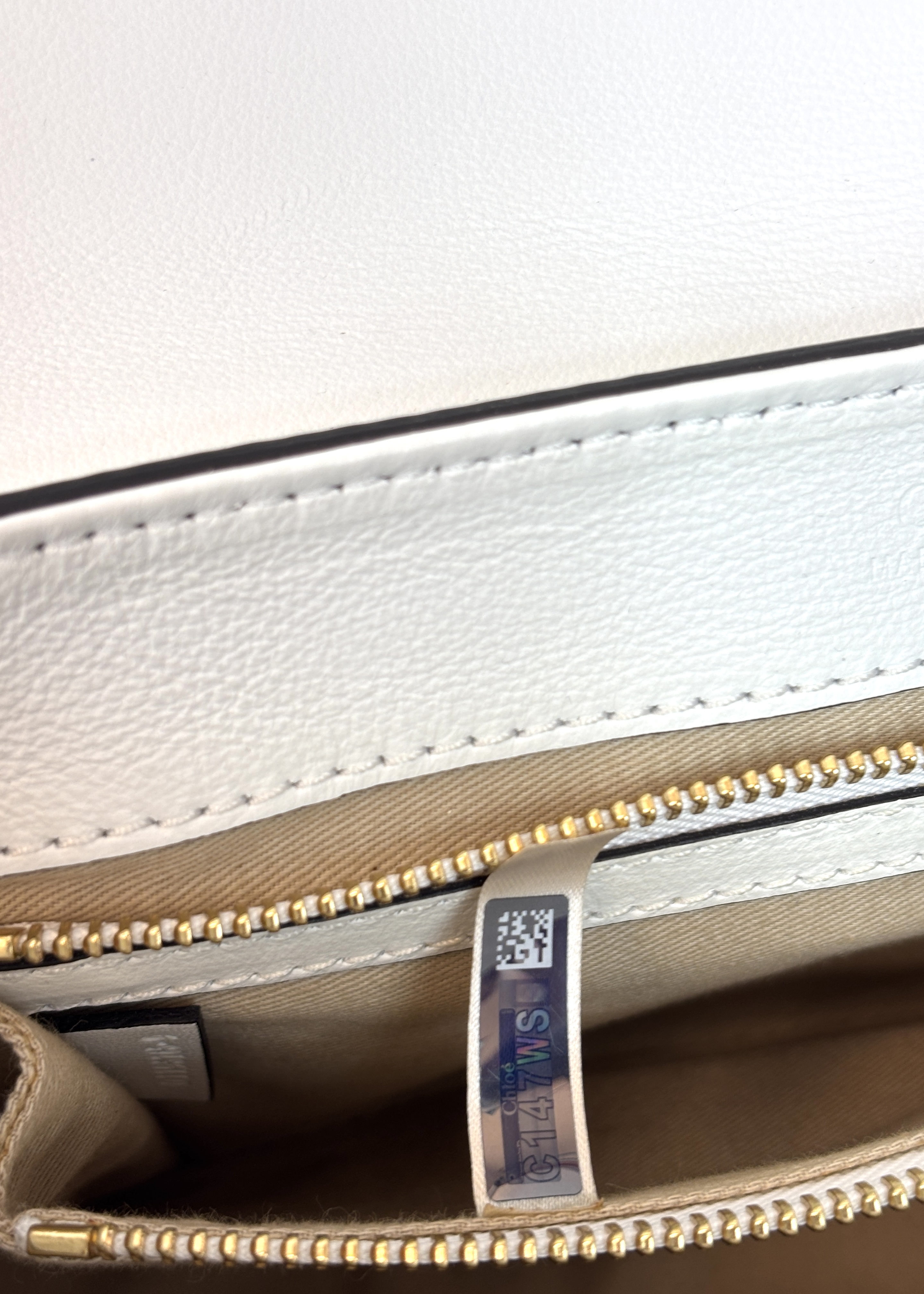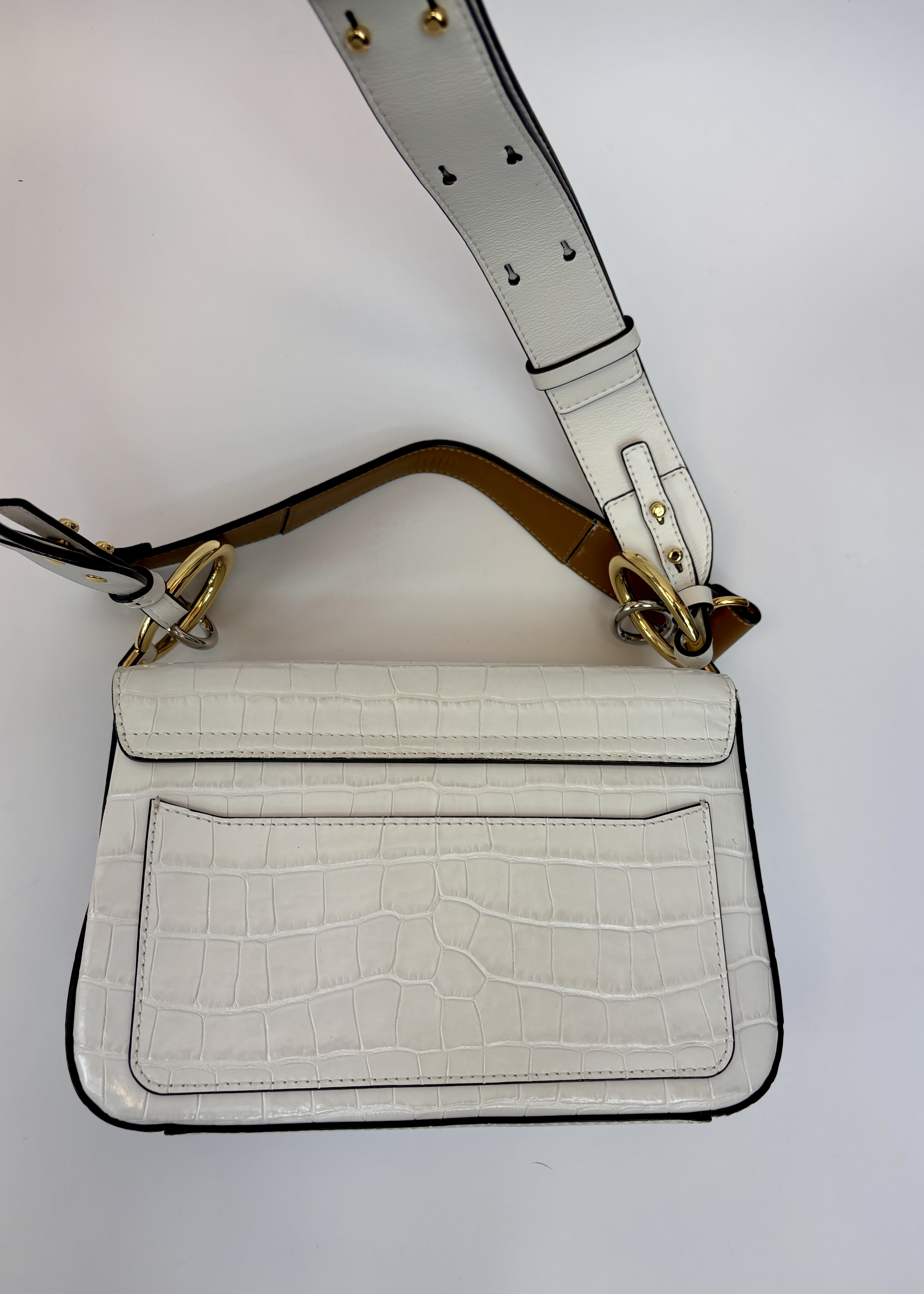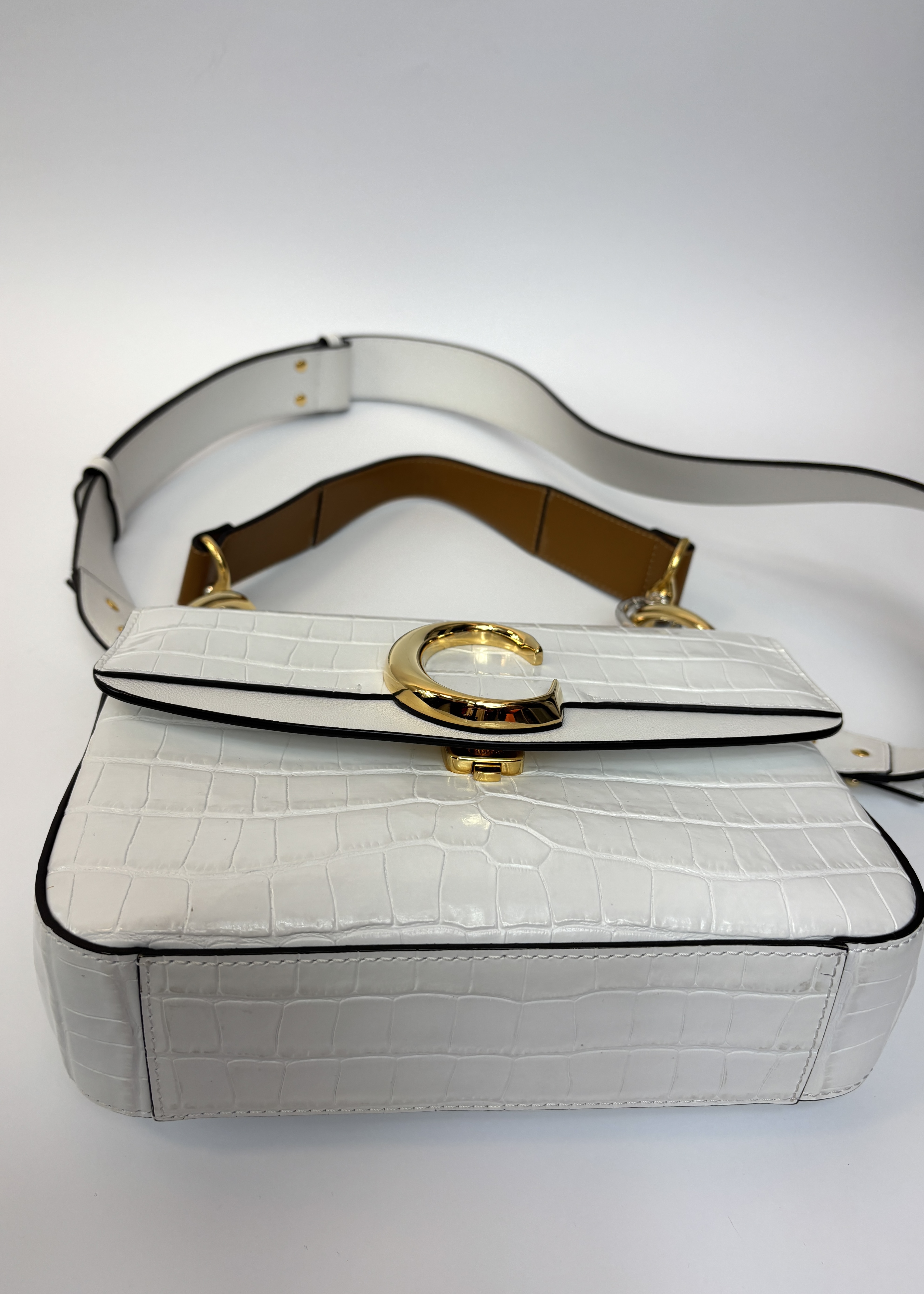 Torebka Chloé C Bag w białej skórze tłoczonej we wzór krokodyla to elegancki model z kolekcji domu mody Chloé, wprowadzony w 2019 roku.