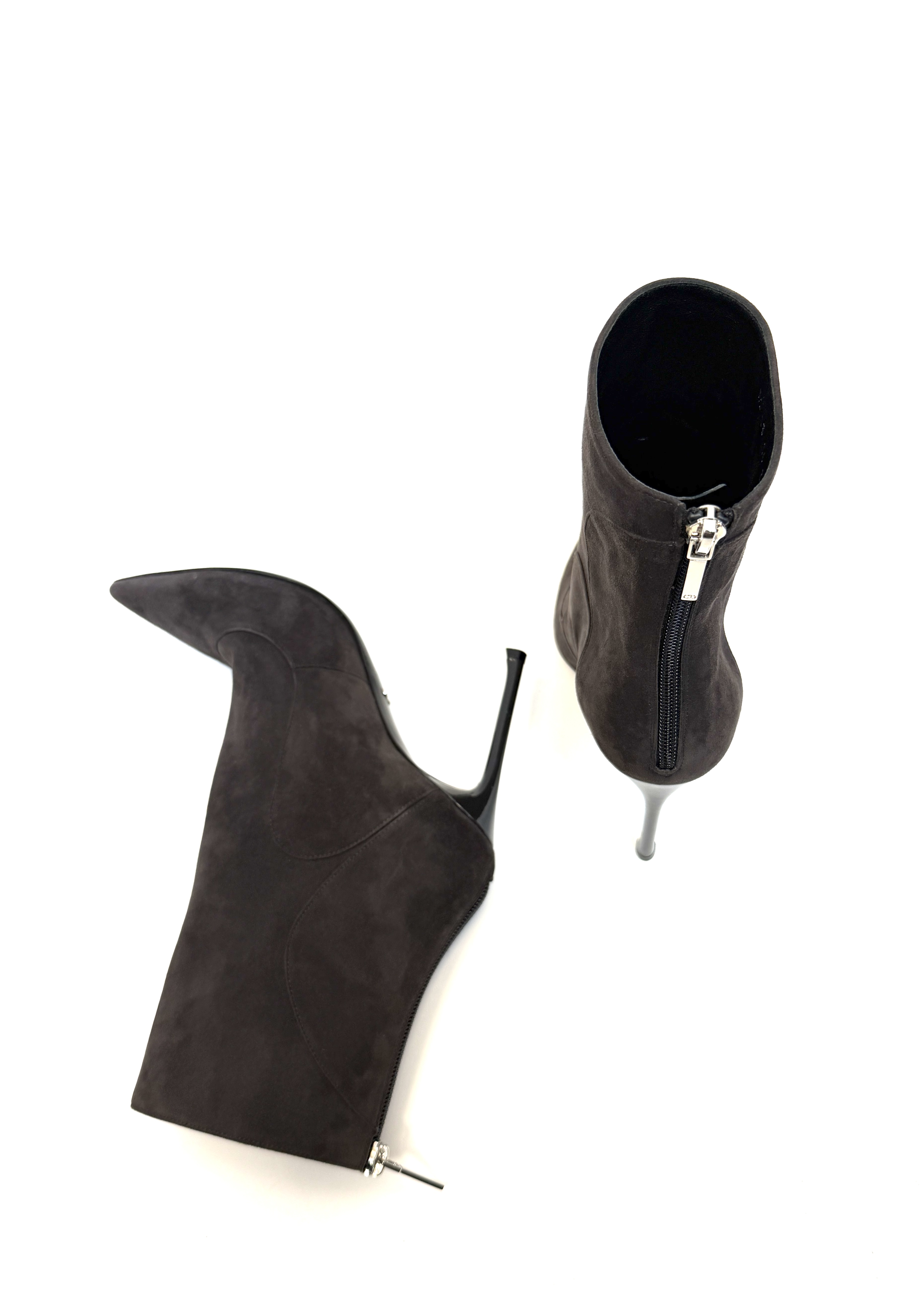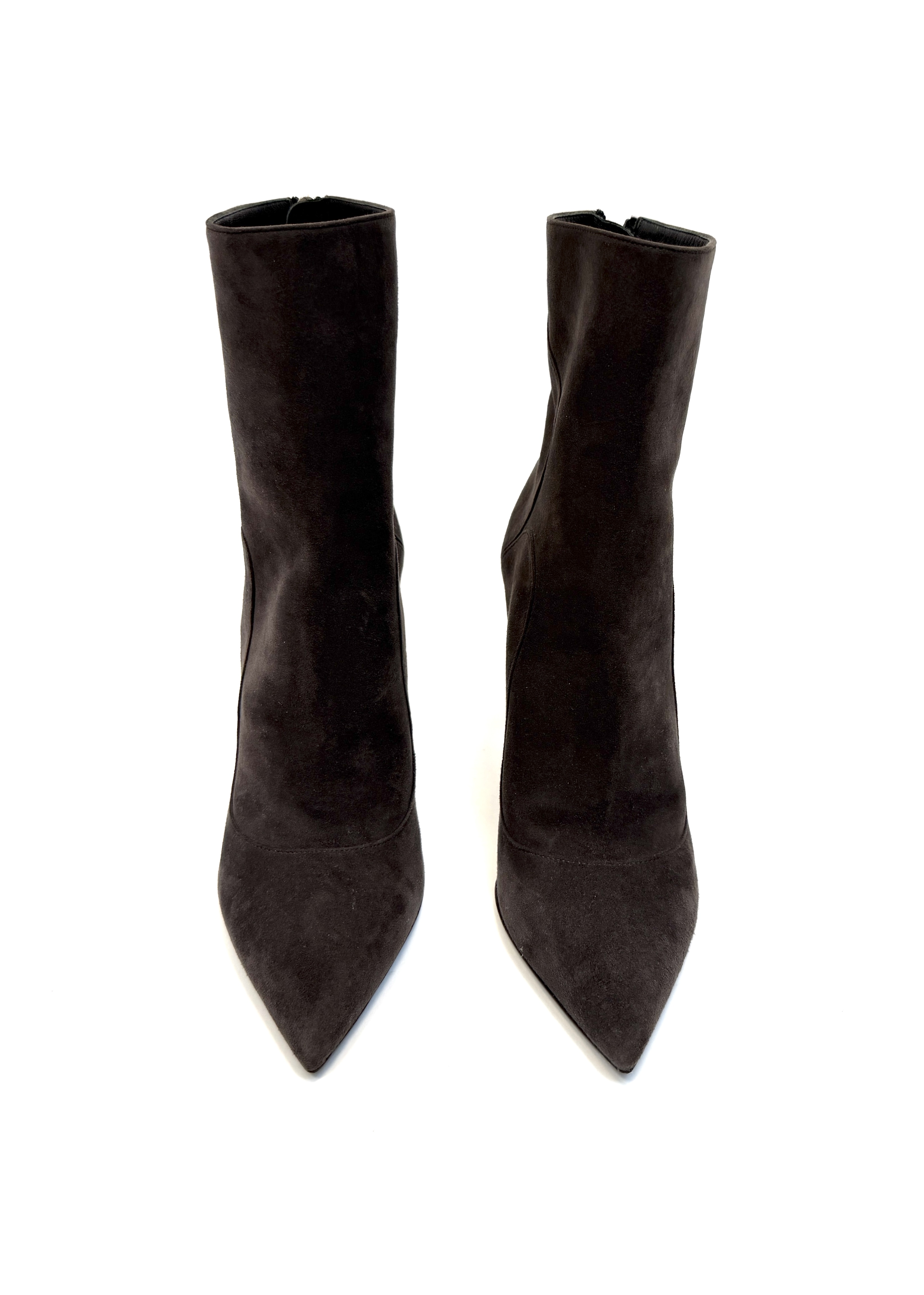 Miękkie czekoladowy kamienny zamsz na wysokiej prostej szpilce, całe skórzane , minimalnie używane