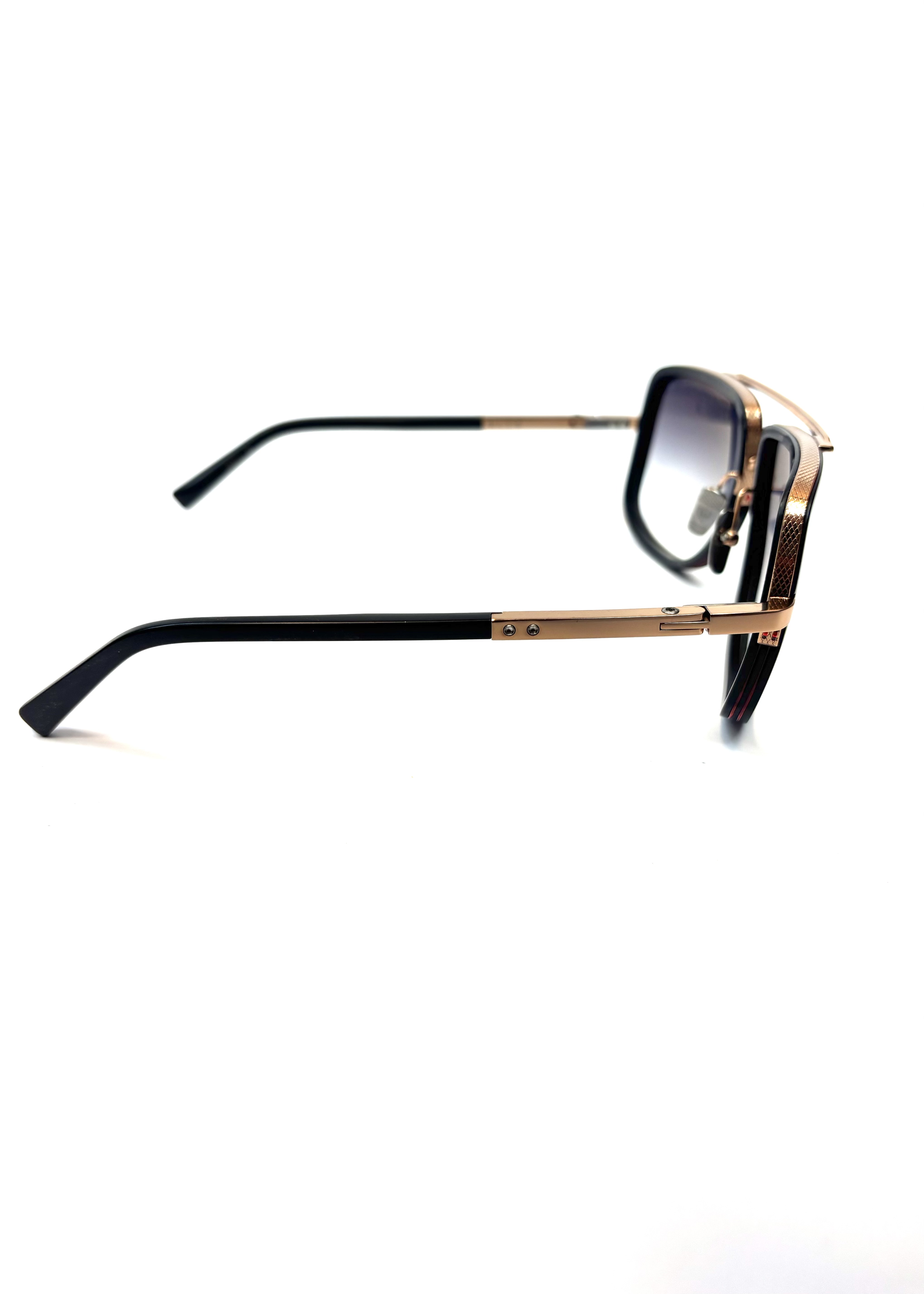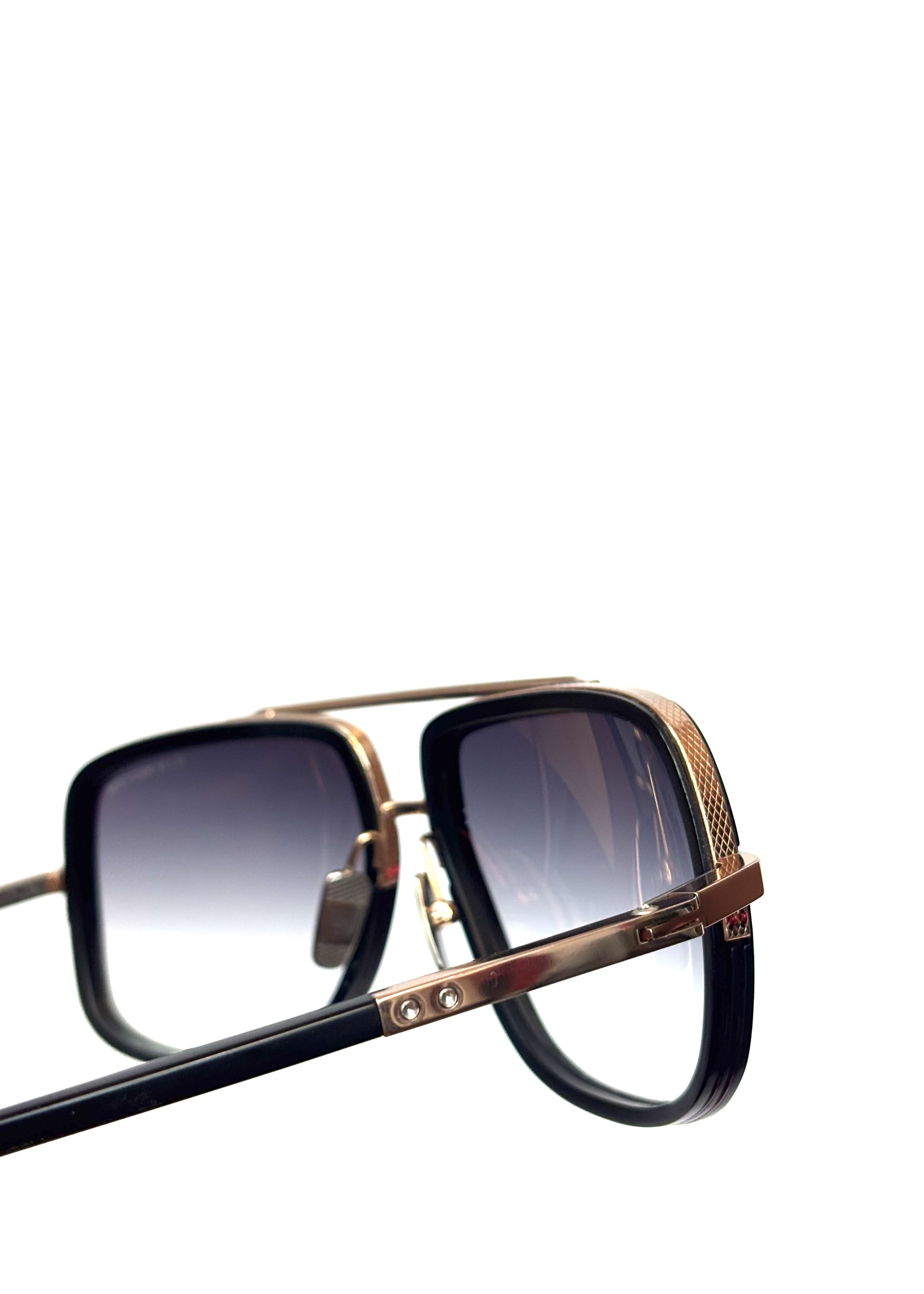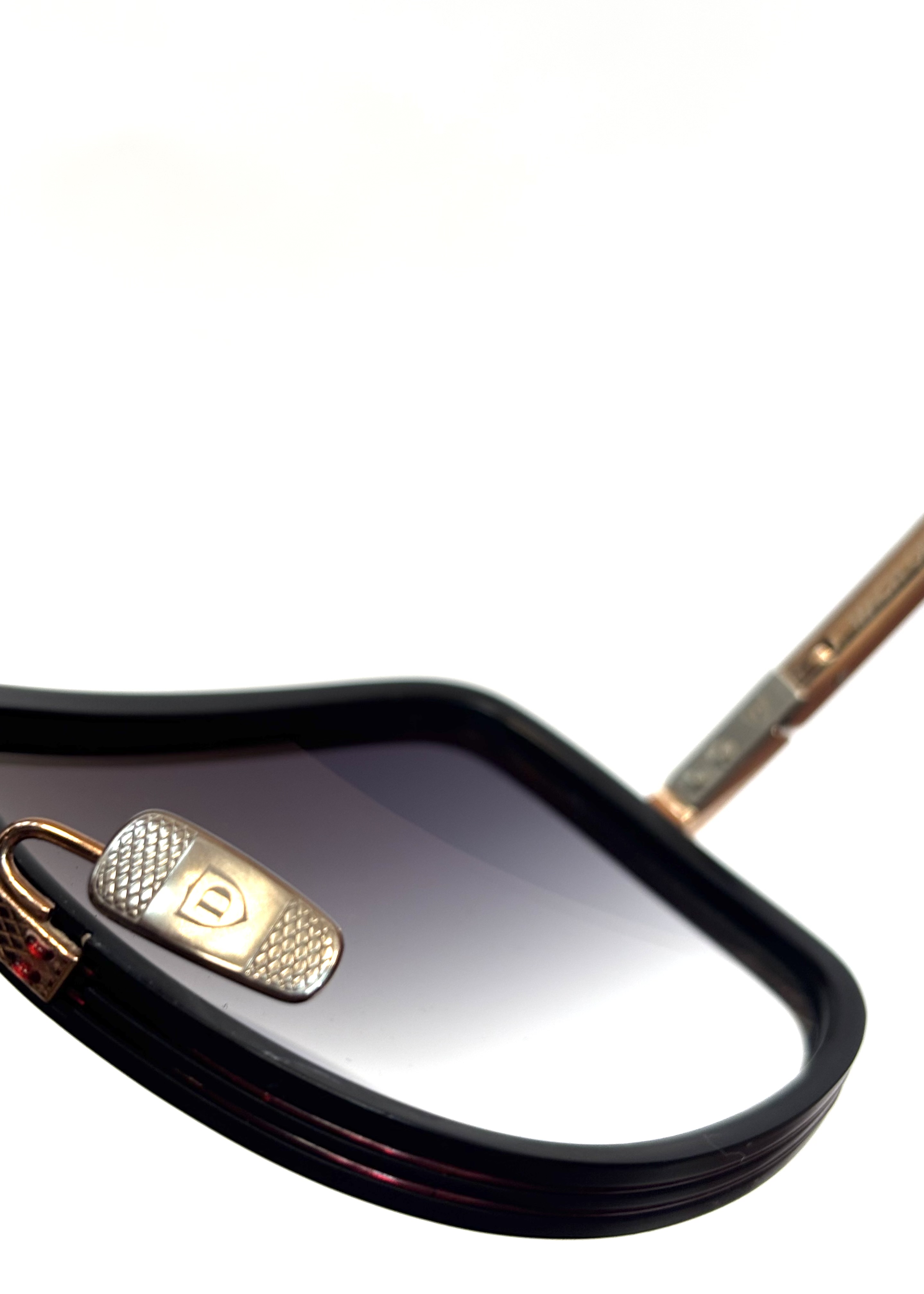Połączenie ultralekkiego tytanu i wysokiej jakości japońskiego acetatu — tytanowa półramka i noski, oprawka w stylu “navigator” z akcentami typu double Nylor, ozdobnymi śrubkami heksagonalnymi i końcówkami zauszników z acetatu.