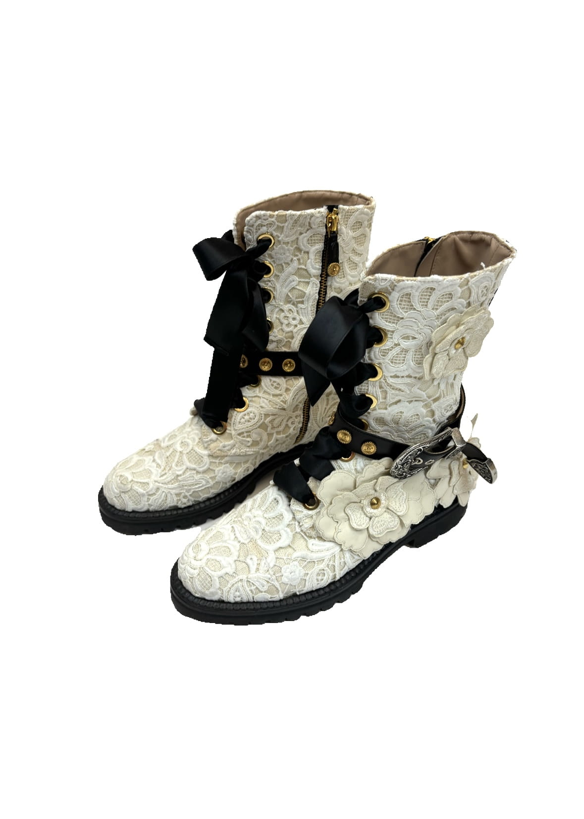 Buty posiadają tasiemki- sznurówki, są zapinane na zamek od wewnętrznej strony, co sprawia, że są łatwe do założenia.
