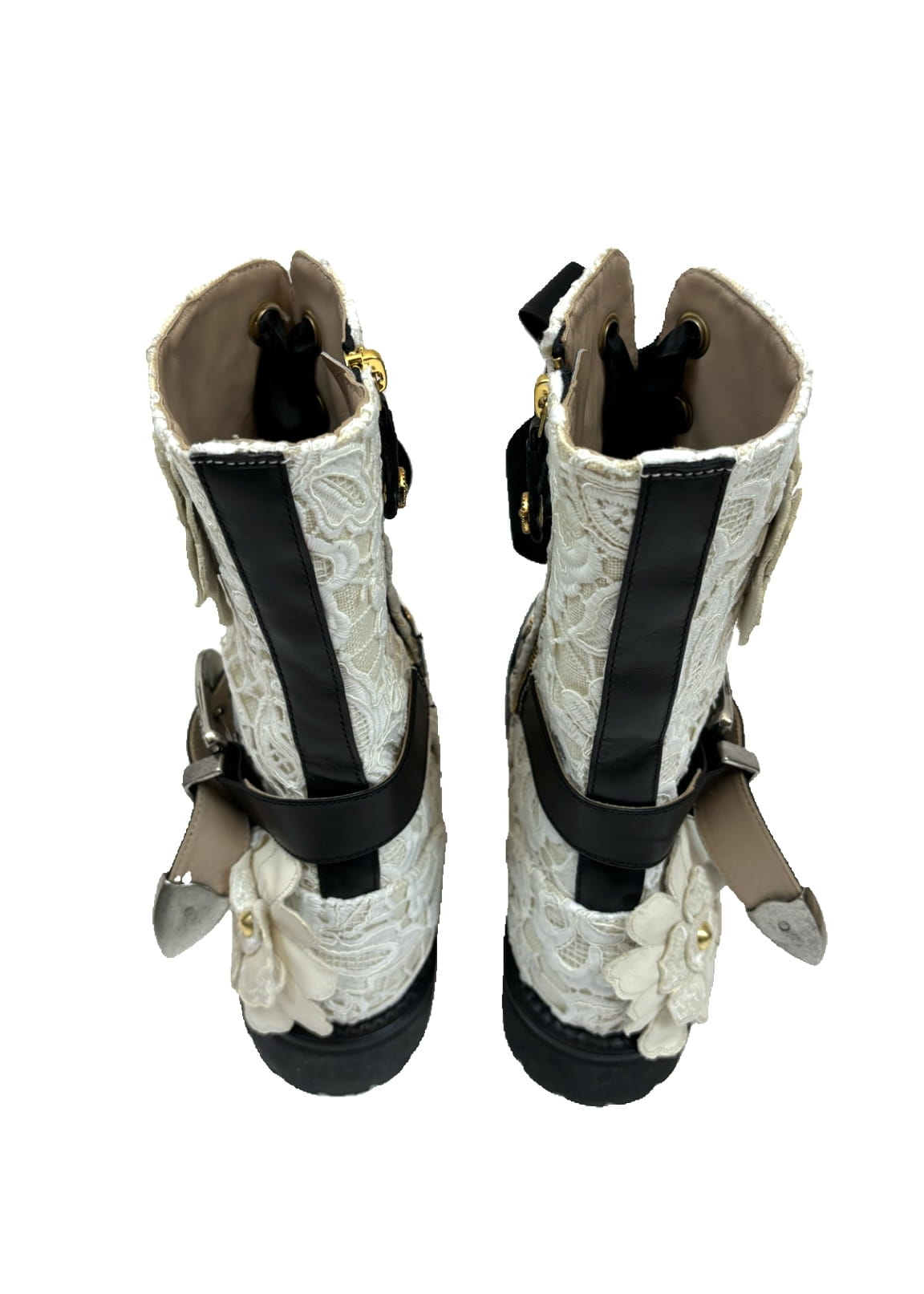 Białe koronkowe botki marki Fausto Puglisi to perfekcyjne połączenie elegancji i stylowego designu.