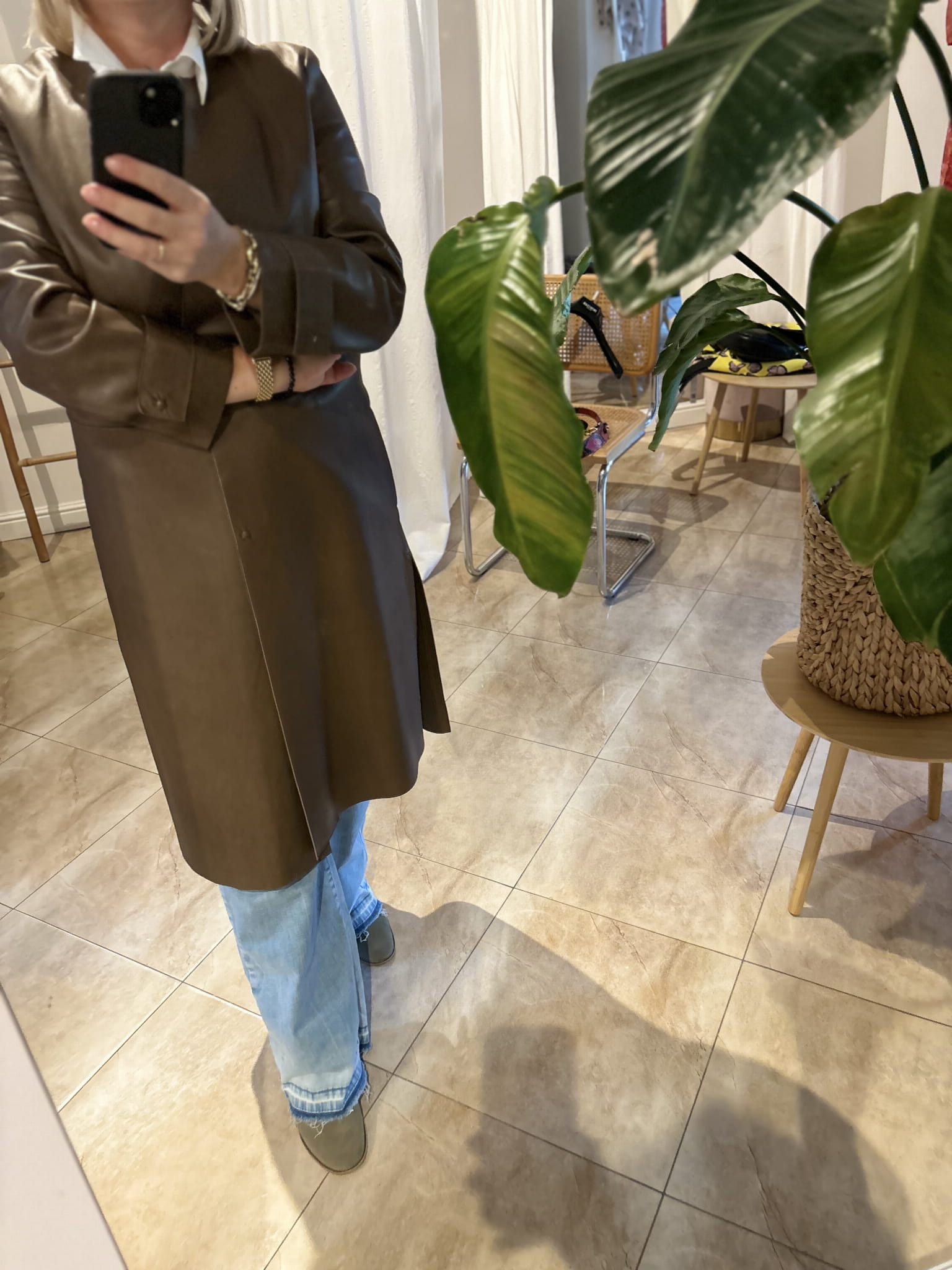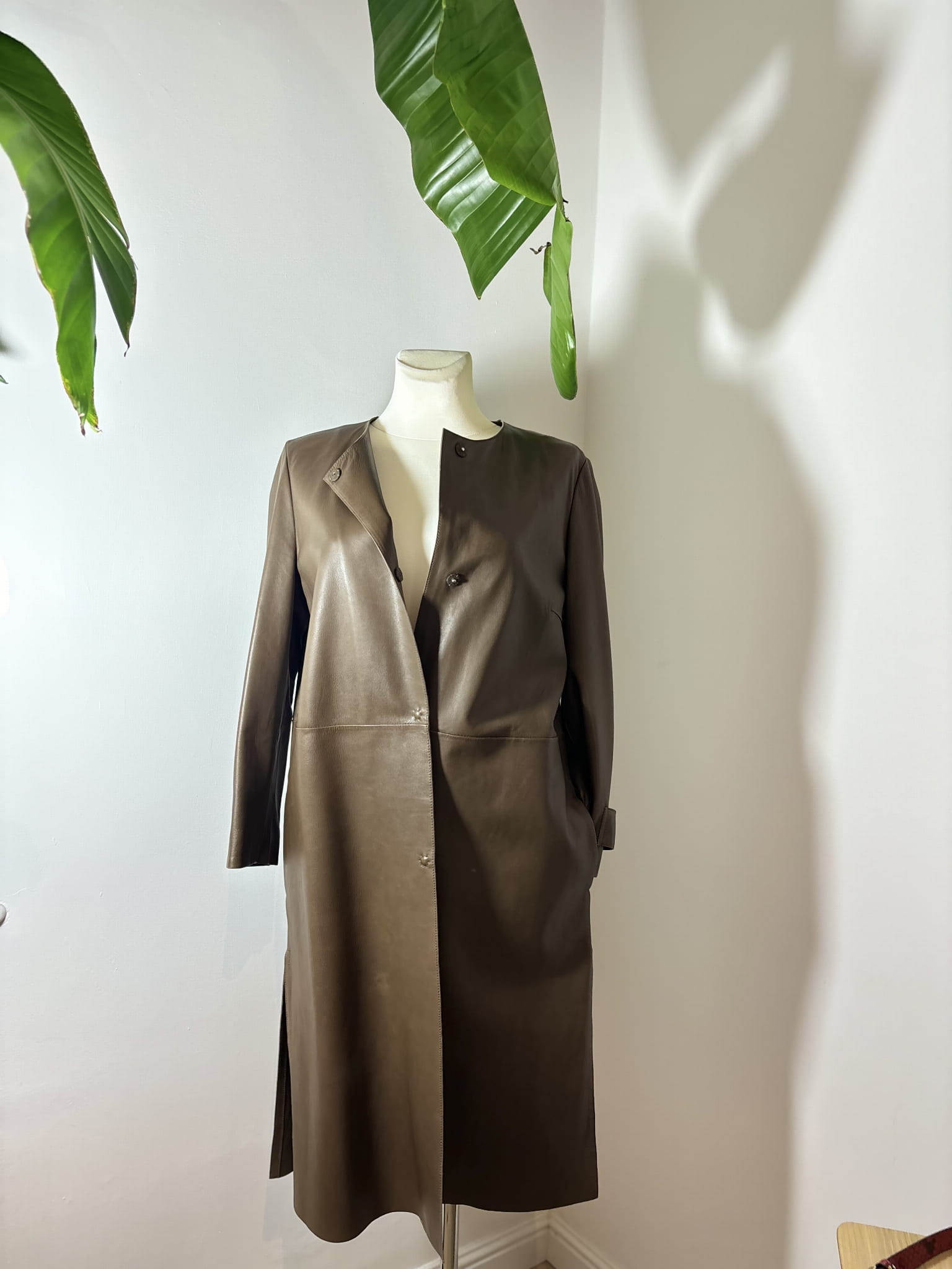 Max Mara weekend skórzany nowy płaszcz zapinany na kryte zatrzaski , piękny chłodny odcień brązu