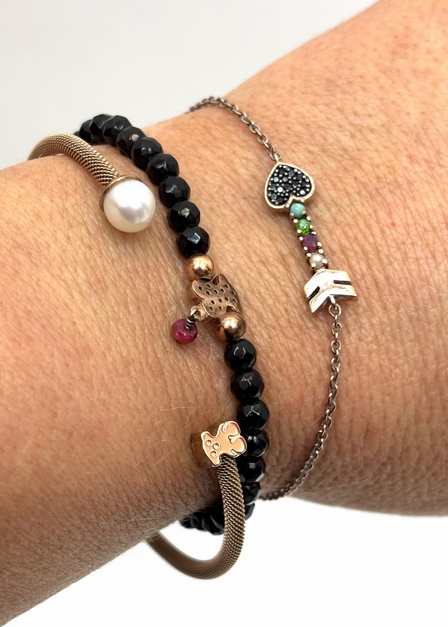 Tous bransoletka różowe złoto , delikatna ozdobiona drobnymi naturalnymi kamieniami markazytami